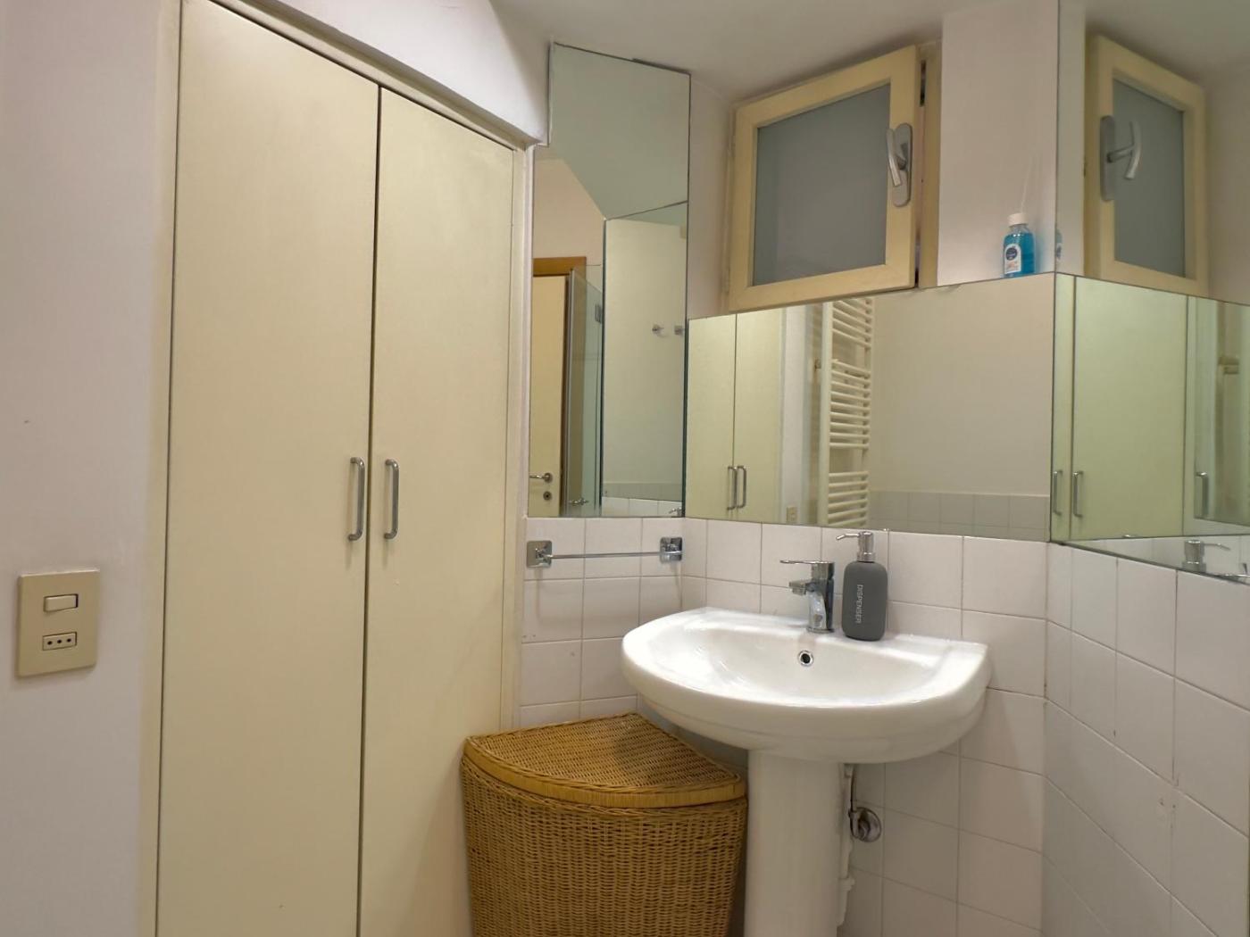 Appartamento con 1 Camera da Letto. This spacious apartment comprises 1 living room, 1 separate bedroom and 1 bathroom with a shower and a bidet. Guests can make meals in the kitchen that is equipped with a stovetop, a refrigerator, kitchenware and an electric kettle. The apartment features parquet floors, a seating area with a flat-screen TV, a washing machine, a wardrobe as well as city views. The unit offers 2 beds.